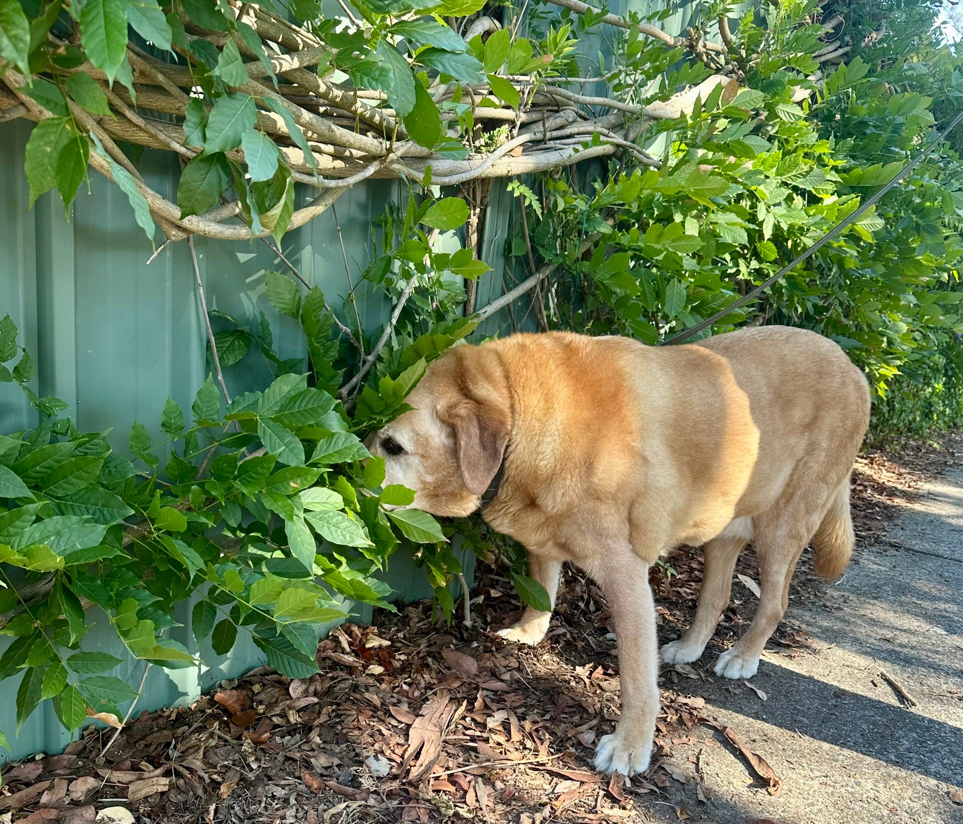 Mango’s walks followed his nose. Crisscrossing the street to follow a scent, to snuffle around in vegetation lining people’s fences, observing and exploring the scentscape of his neighbourhood, where he belonged, where he and other dogs, other creatures, possums, cats had gone before.