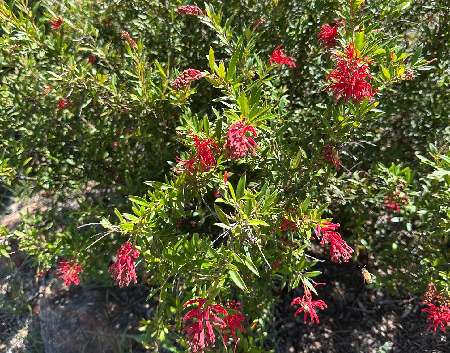 The Paws to Remember men arrived, shifted Mango’s body from the couch to a stretcher, strapped him in, covered him with a shroud, ready for his final ride. As he lay in the back of their station wagon, I picked a red grevillea flower from a bush nearby and tucked it in with him. Safe journeying Mango.